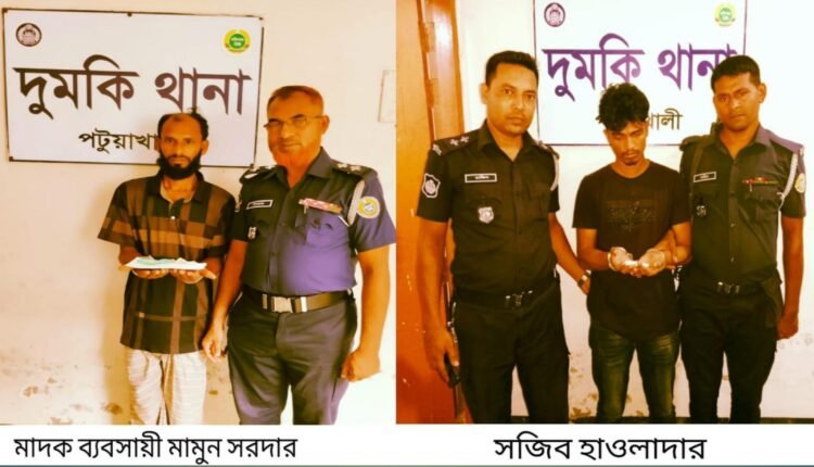 পটুয়াখালীর দুমকিতে পৃথক পৃথক অভিযানে মামুন সরদার (৩৮) ও সজিব হাওলাদার (২৮)’কে ইয়াবাসহ আটক করেছে দুমকি থানা পুলিশ।