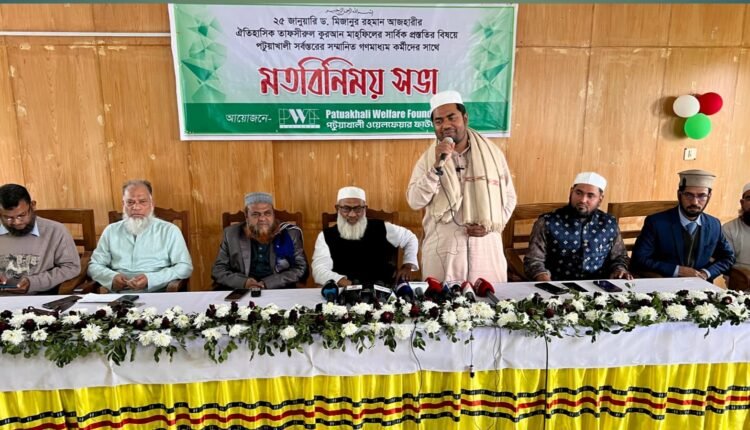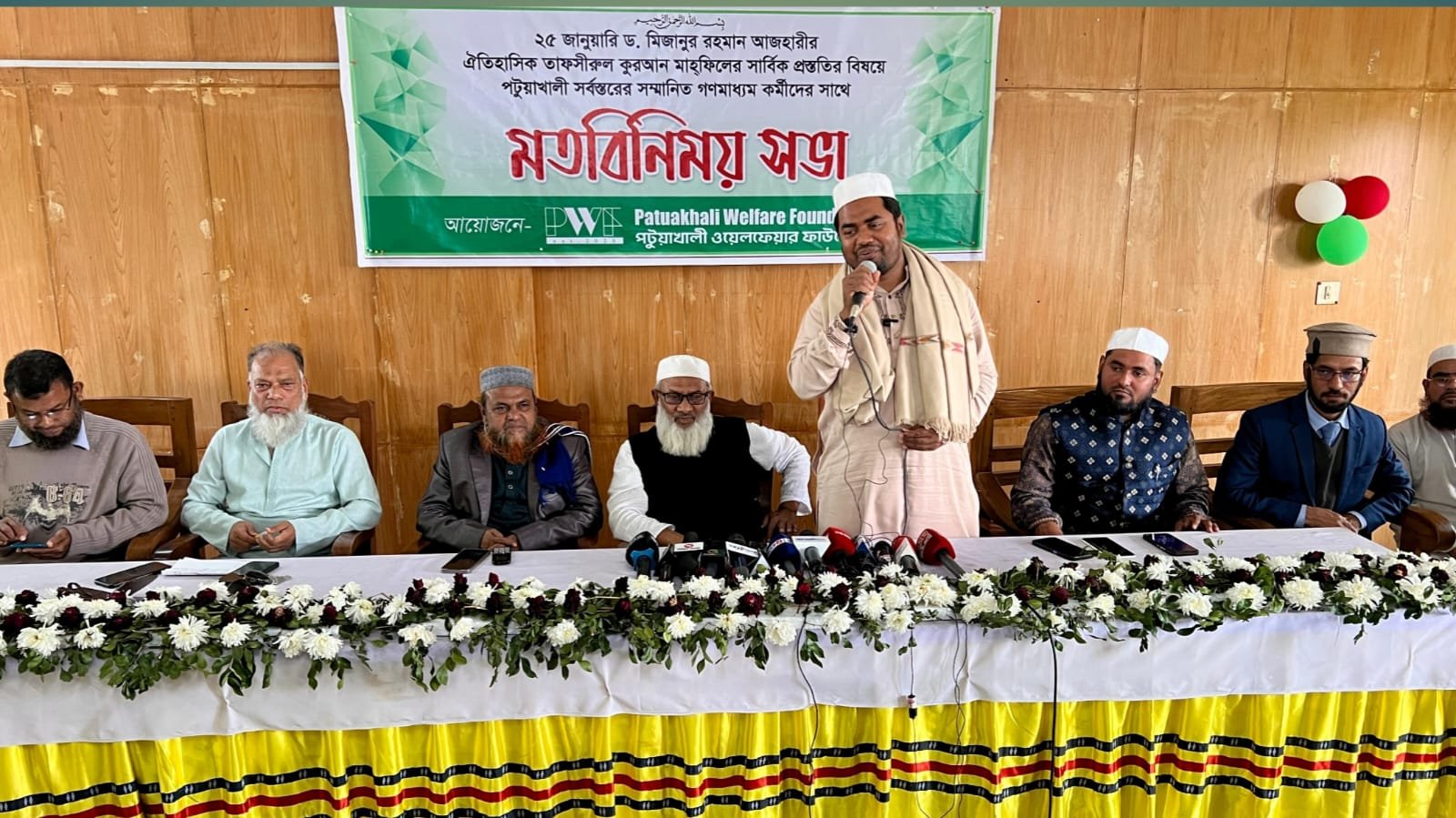 আসন্ন ড. মিজানুর রহমান আজহারির ঐতিহাসিক তাফসীরুল কোরআন মাহফিল উপলক্ষে পটুয়াখালীতে গণমাধ্যম কর্মীদের সঙ্গে এক মতবিনিময় সভা অনুষ্ঠিত হয়েছে।