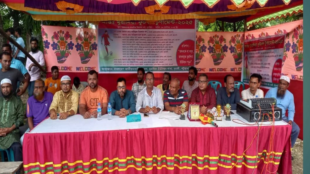 আহবায়ক স্বেচ্ছাসেবক দল দুমকি উপজেলা শাখা হাফিজুর রহমান ফোরকান চেয়ারম্যান (ভারপ্রাপ্ত) মুরাদিয়া ইউনিয়ন পরিষদ সত্য রঞ্জন দাস প্রধান শিক্ষক (ভারপ্রাপ্ত) জয়গুন নেসা মাধ্যমিক বিদ্যালয় ইসরাত হোসেন শাহিন সিনিয়র সহ-সভাপতি মুলাদিয়া ইউনিয়ন বিএনপি মশিউর রহমান সিনিয়র যুগ্ম সাধারণ সম্পাদক মুরাদিয়া ইউনিয়ন বিএন পি হুমায়ুন কবির হাওলাদার সহ-সভাপতি মুরাদিয়া ইউনিয়ন বি এন পি সাইফুল গাজী সাংগঠনিক সম্পাদক মুরাদিয়া ইউনিয়ন বিএনপি মোহাম্মদ শামিম হাওলাদার যুগ্ন আহবায়ক দুমকি উপজেলা যুবদল মোহাম্মদ কবির হোসেন বোর্ড অফিস ব্যবসায়ী সমিতি।টুর্নামেন্টসভাপতিত্ব করেন মাসুদ পারভেজ সাধারণ সম্পাদক মূড়ো দিয়া ইউনিয়ন বিএনপি ও পরিচালনায় ছিলেন সাইদুল ইসলাম সভাপতি মুরাদিয়া ইউনিয়ন ছাত্রদল ও আশিকুর রহমান সাদ্দাম যুগ্ন-আহবায়কদুমকি উপজেলা ছাত্রদল।
