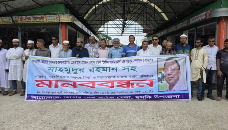 আমার দেশ সম্পাদকের বিরুদ্ধে ষড়যন্ত্র মুলক মামলার প্রতিবাদে দুমকিতে মানববন্ধন
