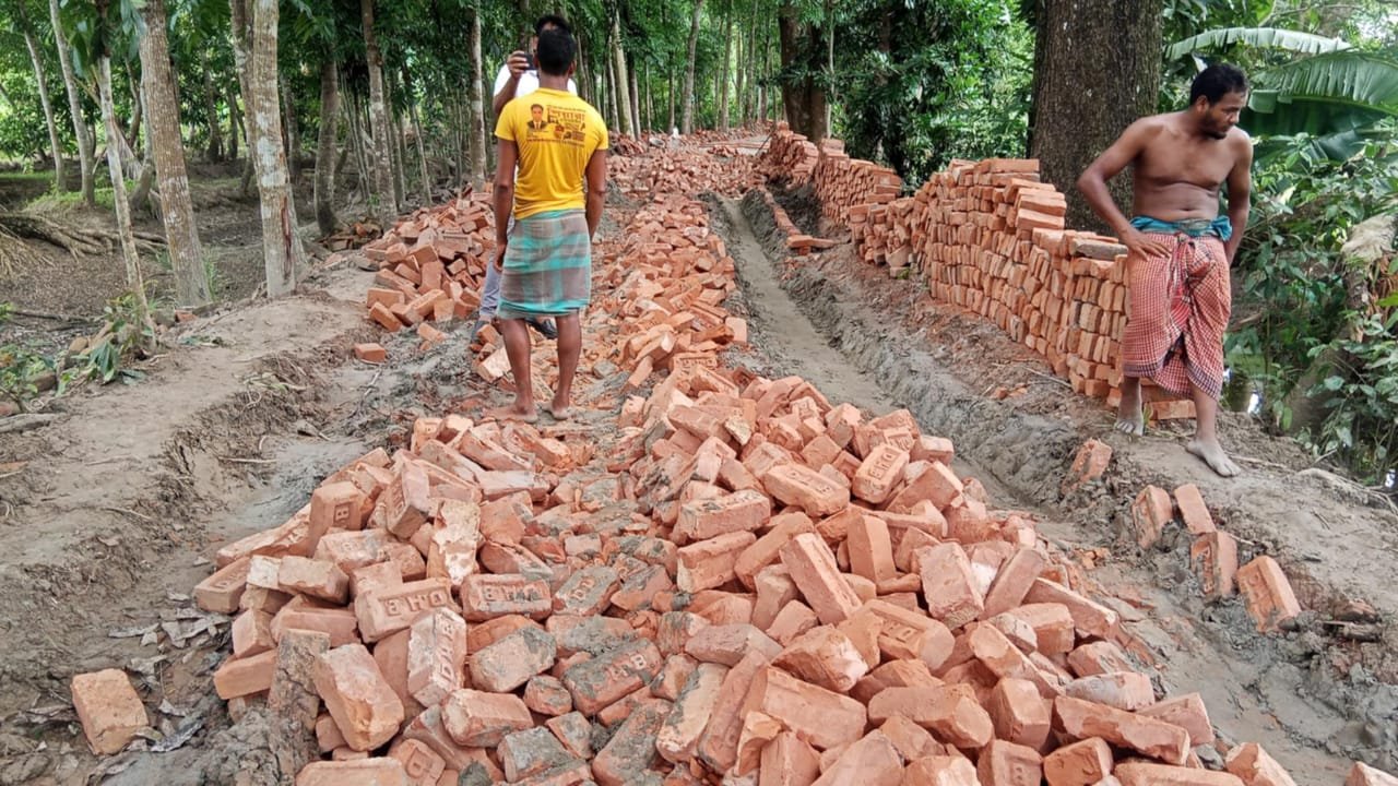 ইউএনও’র নির্দেশনা অগ্রাহ্য-দুমকিতে ২নম্বর ইটে চলছে রাস্তা নির্মাণ কাজ