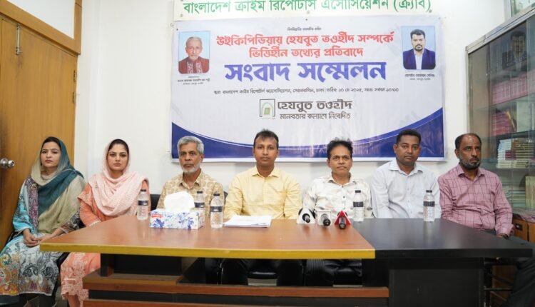 মুক্ত বিশ্বকোষ হিসেবে পরিচিত অনলাইন প্ল্যাটফর্ম ‘উইকিপিডিয়া’-তে হেযবুত তওহীদ সম্পর্কে বিভ্রান্তিকর ও ভিত্তিহীন তথ্য পরিবেশনের অভিযোগ উঠেছে। এ বিষয়ে প্রতিবাদ জানিয়ে রাজধানীর তোপখানা রোডে অবস্থিত বাংলাদেশ ক্রাইম রিপোর্টার্স অ্যাসোসিয়েশন (ক্র্যাব) মিলনায়তনে আজ শনিবার সকাল সাড়ে ১০টায় এক সংবাদ সম্মেলন অনুষ্ঠিত হয়।