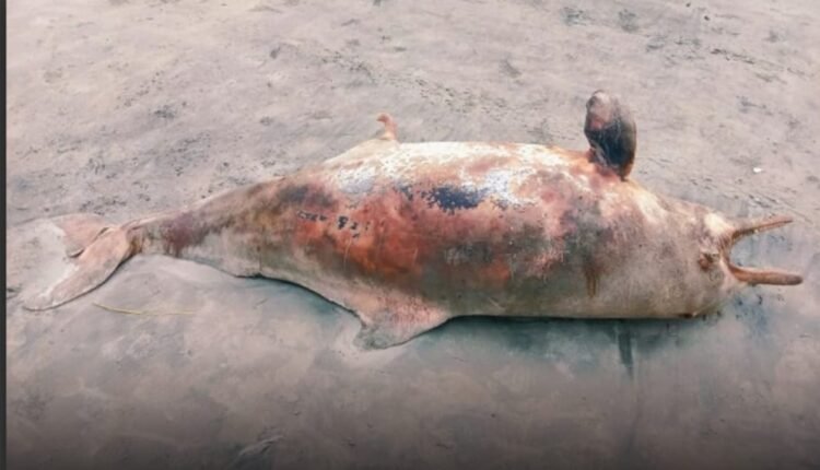 কুয়াকাটা সমুদ্রসৈকতে ভেসে এসেছে ৫ ফুট দৈর্ঘ্যের একটি মৃত ইরাবতী ডলফিন, যা অর্ধগলিত অবস্থায় পাওয়া যায়। শনিবার দুপুরের দিকে জোয়ারের স্রোতে ভেসে এসে সৈকতের গঙ্গামতি পয়েন্টে বালুতে আটকে যায়। স্থানীয় জেলে জসিম উদ্দিন সৈকতের পাশে ডলফিনটি দেখতে পান।