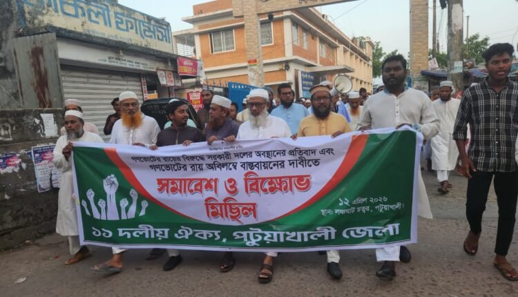 রোববার (১২ এপ্রিল) বিকাল সাড়ে ৫টায় পটুয়াখালী ১১ দলীয় ঐক্যের আয়োজনে পৌর লঞ্চঘাট প্রাঙ্গনে বিক্ষোভ পুর্ব সমাবেশ অনুষ্ঠিত হয়।
