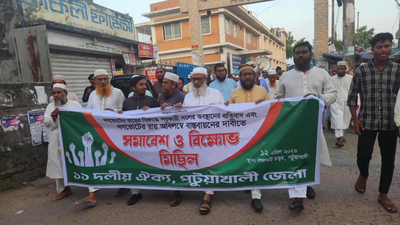 গণভোটের রায়ের বিরুদ্ধে সরকারী দলের অবস্থানের প্রতিবাদ এবং গণভোটের রায় অবিলম্বে বাস্তবায়নের দাবিতে দেশব্যাপী কর্মসূচীর অংশ হিসেবে পটুয়াখালীতে সমাবেশ ও বিক্ষোভ মিছিল অনুষ্ঠিত হয়েছে।