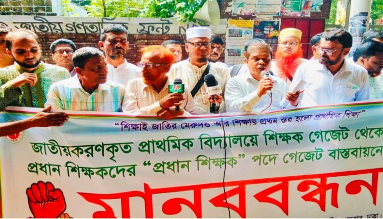জাতীয়করণকৃত প্রাথমিক বিদ্যালয় শিক্ষক গেজেট থেকে বাদ পড়া প্রধান শিক্ষকদের “প্রধান শিক্ষক” পদে গেজেট বাস্তবায়নের দাবি