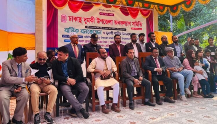 ঢাকাস্থ দুমকি উপজেলা জনকল্যাণ সমিতির উদ্যোগে প্রতি বছরের ন্যায় এবছরও ঝাকঝমক ভাবে এ মিলন মেলা অনুষ্ঠিত হয়েছে। সকাল ৮টা থেকে রাজধানী ও পার্শ্ববর্তী কেরানীগঞ্জ, নাঃগঞ্জ, গাজিপুর ও সাভার অঞ্চল থেকে উত্তরখান এলাকায় দি হোমস এন্ড গার্ডেন্স রিসোর্টে লোক জন আসা শুরু করে। সকাল ১০টার মধ্যে দি হোমস গার্ডেন্স যেন রাজধানীর বুকে একখণ্ড দুমকি তে পরিনত হয়। অনেকের সাথে দীর্ঘ বছর পরে সাক্ষাত, শ্রদ্ধা, ভালোবাসা স্নেহের বাহুডোরে একে অপরকে জড়িয়ে ধরে। সাড়ে ১১টার দিকে রিসোর্টে প্রবেশ করে আজমাত গ্রুপ অব ইন্ডাস্ট্রিজ এর ব্যাবস্থাপনা পরিচালক, বিশিষ্ট শিল্পপতি প্রকৌশলী আজমাত রহমান, সিআইপি। এরপর এক এক করে আমন্ত্রিত অতিথিরা মিলনমেলায় আসতে থাকে। ঢাকাস্থ দুমকি উপজেলা জনকল্যাণ সমিতির সভাপতি মেজর (অব) প্রফেসর ডাঃ আব্দুল ওহাব মিনার এর সভাপতিত্বে অনুষ্ঠিত মিলন মেলায় অতিথি হিসেবে উপস্থিত ছিলেন সন্মানিত উপদেষ্টা ও দায়রা জেলা জজ (অব:) জনাব এম এ রব হাওলাদার, যুগ্ম-সচিব জনাব প্রকৌশলী আবুল কালাম আজাদ, আজমাত গ্রুপের ব্যবস্থাপনা পরিচালক জনাব প্রকৌশলী আজমাত রহমান,পুলিশ সুপার জনাব এম এম মাহমুদ হাসান, উপসচিব জনাব হারুন অর রশীদ, মেজর ডাঃ নুশরাত জাহান, পটুয়াখালী বিজ্ঞান ও প্রযুক্তি বিশ্ববিদ্যালয় এর প্রফেসর জনাব ড. দেলোয়ার হোসেন, ইষ্ট ওয়েষ্ট ইউনিভার্সিটির ফ্যাকাল্টি ড. ইশরাত হোসেন নিপু, ব্যারিস্টার ফারহা ফিজা বিনতে আমিন, স্বেচ্ছাসেবক দলের সাবেক কেন্দ্রীয় সহ-সভাপতি জনাব ফরিদ উদ্দীন আহমেদ, দুমকি উপজেলা ইঞ্জিনিয়ার্স এসোসিয়েশন এর সভাপতি ও প্রেসক্লাব দুমকি’র সাধারন সম্পাদক, দৈনিক আমার দেশ প্রতিনিধি মোঃ কামাল হোসেন সহ দুমকী উপজেলা বিশিষ্ট ব্যক্তি বর্গ।