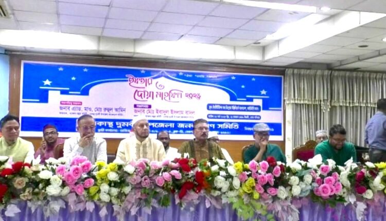 ঢাকাস্থ দুমকি উপজেলা জনকল্যাণ সমিতির উদ্যোগে এক ইফতার ও দোয়া মাহফিল অনুষ্ঠিত হয়।