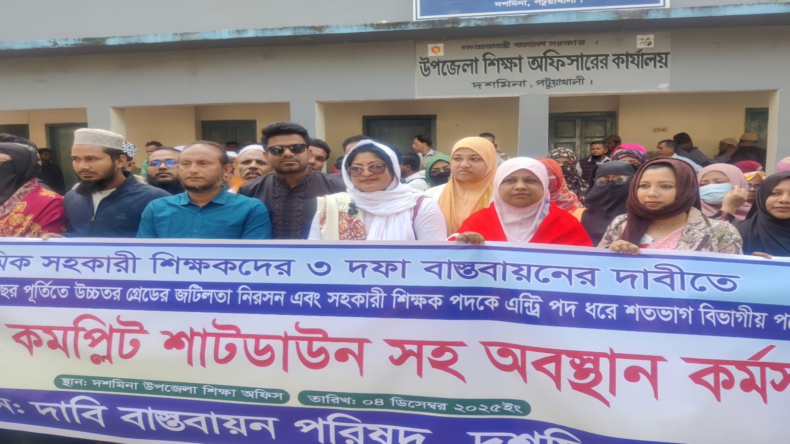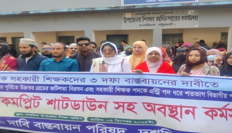 দশমিনায় প্রাথমিক শিক্ষকদের তিন দফা দাবিতে স্কুল শাটডাউন ও অবস্থান কর্মসূচি