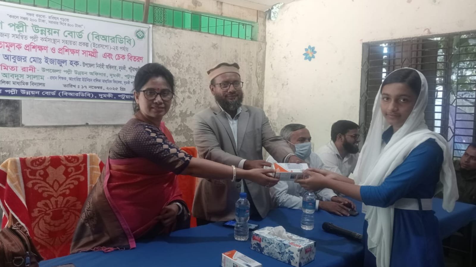 সোমবার (১৭ নভেম্বর) সকাল ১১টায়। বাংলাদেশ পল্লী উন্নয়ন বোর্ড (বিআরডিবি)-এর আয়োজনে, দুমকি উপজেলার আংগারিয়া ইউনিয়ন বালিকা মাধ্যমিক বিদ্যালয় চত্বরে এবং দুপুর ২টায় বাঁশবুনিয়া বেগম মেহেরুন্নেছা বালিকা মাধ্যমিক বিদ্যালয়ে কিশোরীদের   এই সচেতনতামূলক প্রশিক্ষণ দেওয়া হয়। প্রশিক্ষন শেষে কিশোরীদের মাঝে শিক্ষা সামগ্রী ও জমাকৃত টাকা সহ প্রণোদনার চেক বিতরন করা হয়।  প্রশিক্ষন সামগ্রী ও চেক বিতরন সভায়   প্রধান অতিথি হিসাবে উপস্থিত ছিলেন দুমকি  উপজেলা নির্বাহী কর্মকর্তা আবুজর মোঃ ইজাজুল হক । বিশেষ অতিথি হিসাবে উপস্থিত ছিলেন উপজেলা পল্লী উন্নয়ন কর্মকর্তা নমিতা রানী, সহকারী পল্লী উন্নয়ন অফিসার নুসরাত নওশীন সুবর্না, প্রেসক্লাব দুমকি’র সাধারন সম্পাদক মোঃ কামাল হোসেন।