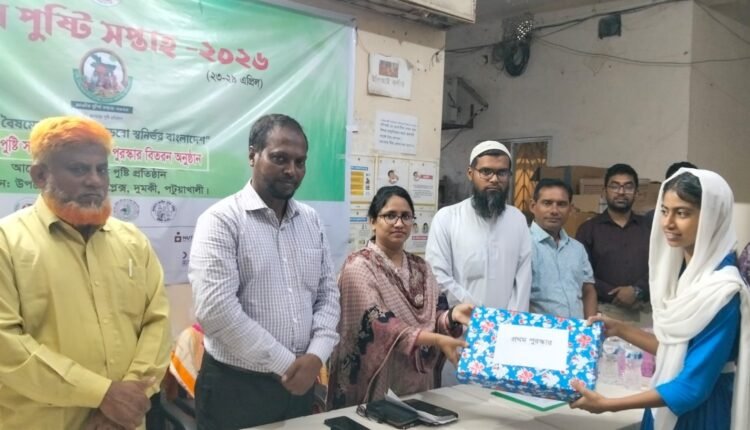 পটুয়াখালীর দুমকিতে জাতীয় পুষ্টি সপ্তাহের সমাপনী ও বিজয়ীদের মধ্যে পুরস্কার বিতরন অনুষ্ঠিত হয়েছে।