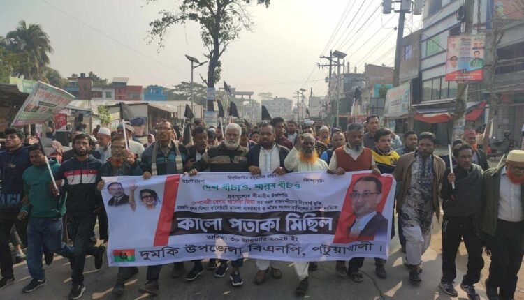 দুমকীতে বিএনপি’র কালো পতাকা মিছিল