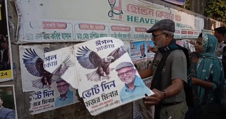 আসন্ন ত্রয়োদশ জাতীয় সংসদ উপলক্ষেনি র্বাচন কমিশনের আচারণবিধি মানতে নিজ হাতে পোষ্টার অপসারন করছেন এবিপার্টি পটুয়াখালী -১ আসনের মনোনীত সংসদ সদস্য প্রার্থী প্রফেসর মেজার ডা. আব্দুল ওহাব মিনার (অব.)।