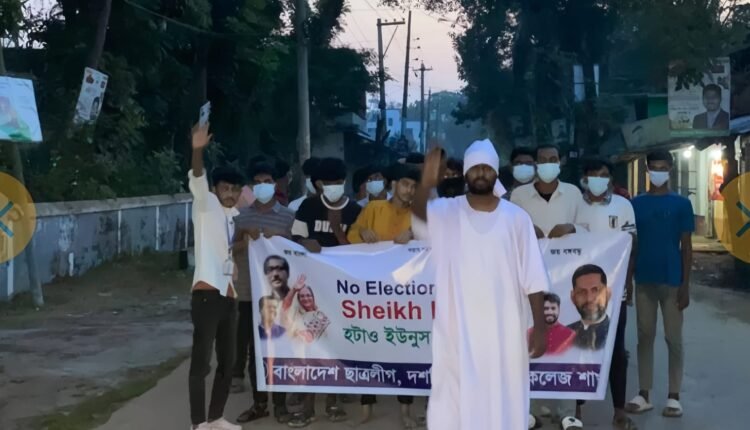 পটুয়াখালীর দশমিনা উপজেলায় নিষিদ্ধ ঘোষিত সংগঠন ছাত্রলীগের নেতা-কর্মীরা ‘জয় বাংলা’ স্লোগান দিয়ে ঝটিকা মিছিল করেছেন। উপজেলা সরকারি কলেজ শাখা ছাত্রলীগের ব্যানারে অনুষ্ঠিত এই মিছিলের একটি ভিডিও ইতোমধ্যে সামাজিক যোগাযোগমাধ্যমে ভাইরাল হয়েছে।