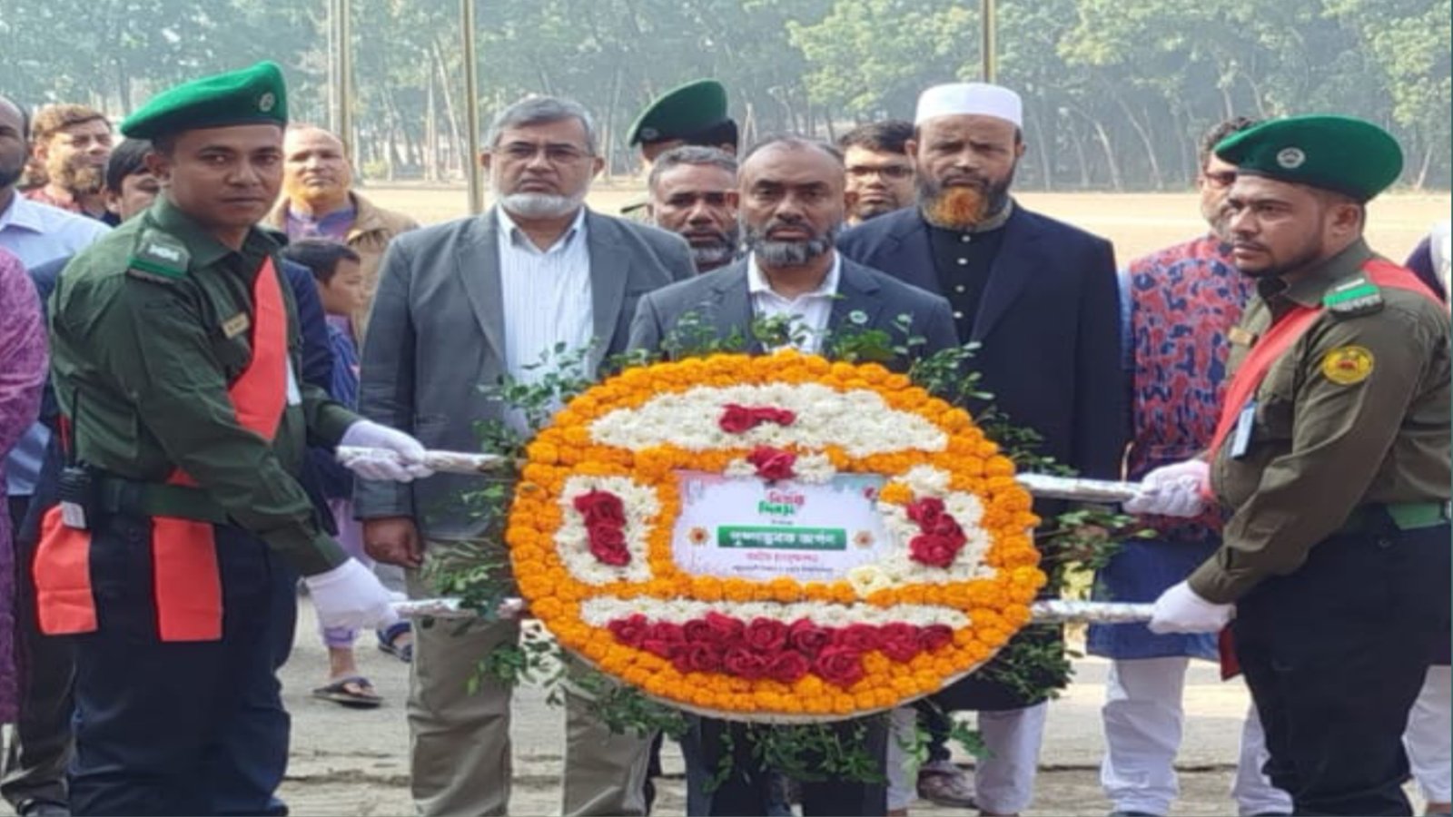 সকালে উপাচার্য প্রফেসর ড. কাজী রফিকুল ইসলামের নেতৃত্বে জামায়াতপন্থী শিক্ষক-কর্মচারী ও শিবিরের স্বল্পসংখ্যক নেতাকর্মী শহীদ মিনারে ফুল দিয়ে শ্রদ্ধা জানান। পরে প্রো-ভিসি প্রফেসর ড. হেমায়েত জাহানের নেতৃত্বে জিয়া পরিষদ, ইউট্যাবসহ বিএনপি পন্থী শিক্ষক-কর্মচারী ও শিক্ষার্থীরা বিজয় র্যালি শেষে শহীদ মিনারে শ্রদ্ধা নিবেদন করেন।