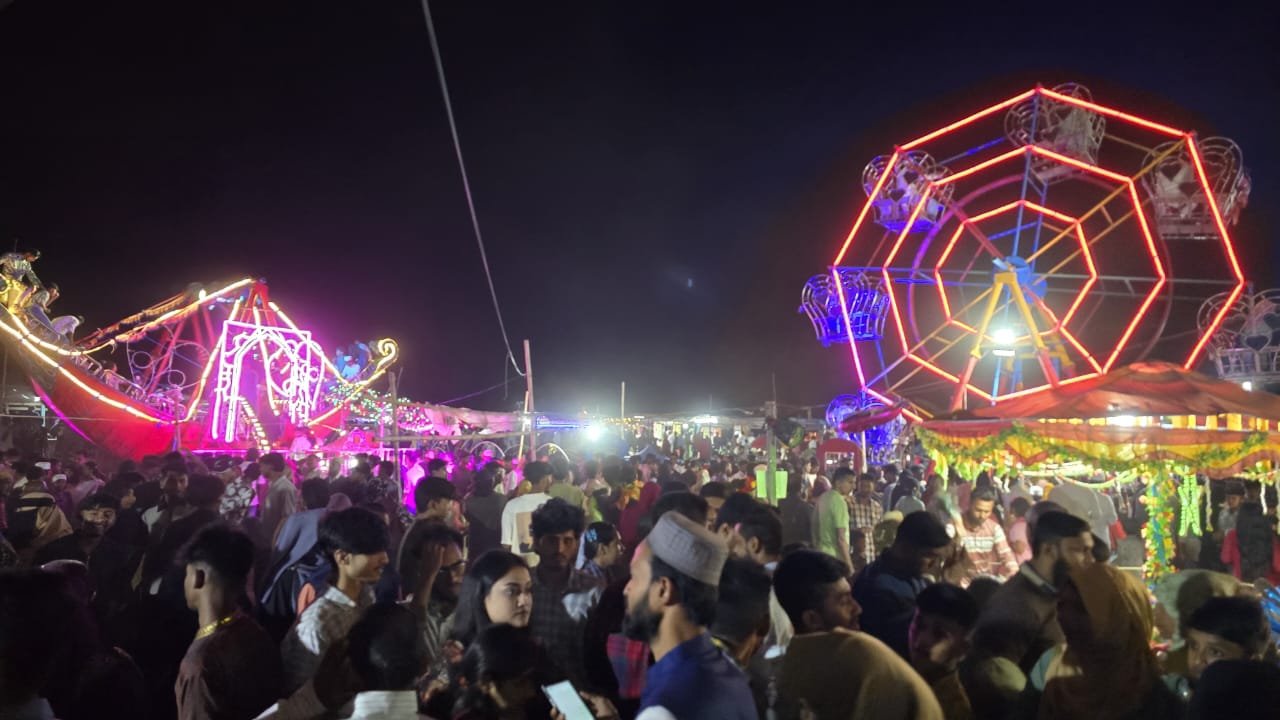 সন্ধ্যা নামার সঙ্গে সঙ্গে মেলার সৌন্দর্য যেন আরও বহুগুণে বৃদ্ধি পায়। বর্ণিল আলোকসজ্জা, মানুষের কোলাহল আর বিনোদনের নানা আয়োজনে পুরো এলাকা পরিণত হয় এক প্রাণবন্ত উৎসবস্থলে।