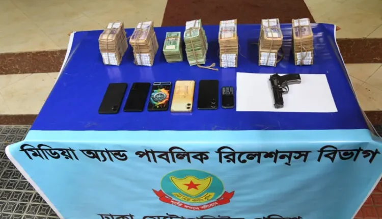 ঢাকার মিরপুরে চাদাঁবাজি ও প্রতারণা করে টাকা লুট করে নেয়ার অভিযোগে ছয়জনকে গ্রেফতার করেছে পুলিশ। গ্রেফতারের সময় আটকদের থেকে ৫৭ লাখ ৫০ হাজার টাকা উদ্ধার করা হয়েছে বলে জানিয়েছে ঢাকা মহানগর পুলিশের।