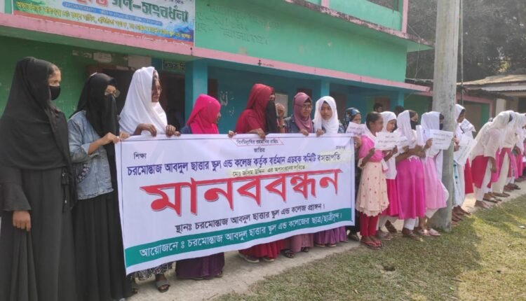 পটুয়াখালীর রাঙ্গাবালী উপজেলার চরমোন্তাজ ইউনিয়নের আবদুল ছাত্তার স্কুল এন্ড কলেজের এডহক কমিটির  সভাপতি জসিম উদ্দিনের পদত্যাগের দাবিতে মানববন্ধন করেছে শিক্ষার্থীরা। ক্লাস বর্জন করে এক দফা এক দাবিতে বুধবার সকাল সাড়ে ১০ টায় ওই শিক্ষাপ্রতিষ্ঠানের মাঠে এ কর্মসূচি পালন করে তারা। এছাড়া কলেজের গোপন এডহক কমিটি গঠনের প্রতিবাদ কর্মসূচিতে অংশ নেওয়ার জেরে ১১ জনের বিরুদ্ধে বিতর্কিত ওই সভাপতির করা সাজানো মামলা প্রত্যাহারের দাবিতে একইদিন দুপুরে পৃথক মানববন্ধন ও বিক্ষোভ মিছিল করেছে এলাকাবাসী।