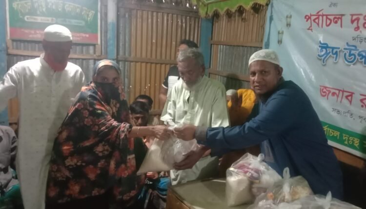 রূপগঞ্জে পূর্বাচল দূঃস্থ সমাজ কল্যাণ সংস্থার উদ্যোগে ঈদ সামগ্রী বিতরণ