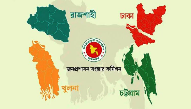 দেশের চারটি পুরোনো বিভাগকে চারটি প্রদেশে রূপান্তর করার সুপারিশ নিয়ে ভাবছে জনপ্রশাসন সংস্কার কমিশন। রাষ্ট্রীয় নিরাপত্তাসহ গুরুত্বপূর্ণ বিষয়গুলো কেন্দ্রের অধীনে রেখে অন্যান্য বিষয়ের দায়িত্ব প্রদেশগুলোর হাতে দেওয়ার প্রস্তাব করছে এ কমিশন। প্রথম আলোর প্রতিবেদন সূত্রে এ তথ্য জানা গেছে।